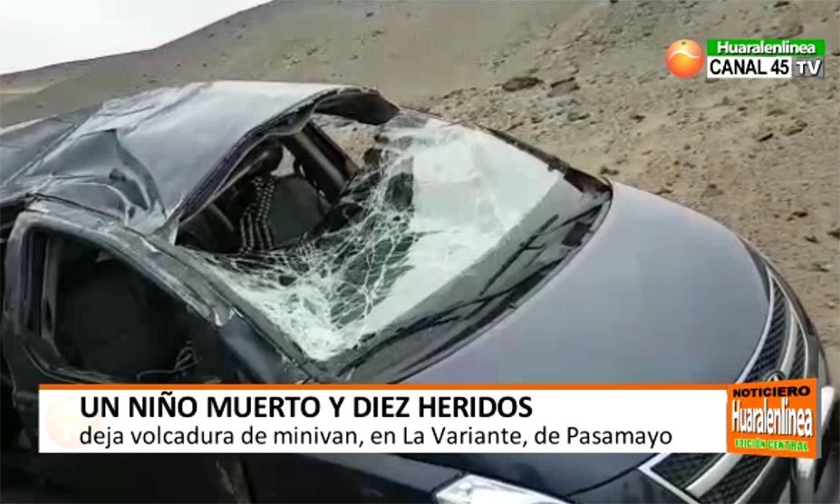 Lamentable accidente en la Variante esta tarde, dejó como saldo un niño de apenas un año fallecido y diez personas heridas. Se trata del despiste y volcadura de una minivan en circunstancias que son investigadas. Los heridos fueron trasladados hasta la sala de emergencia del hospital de chancay.