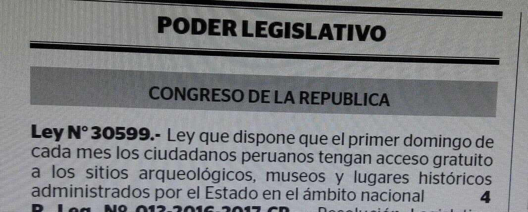 Todos los ciudadanos peruanos podrán entrar sin costo a los sitios arqueológicos, museos y lugares históricos administrados por el Estado en todo el Perú el primer domingo de cada mes.