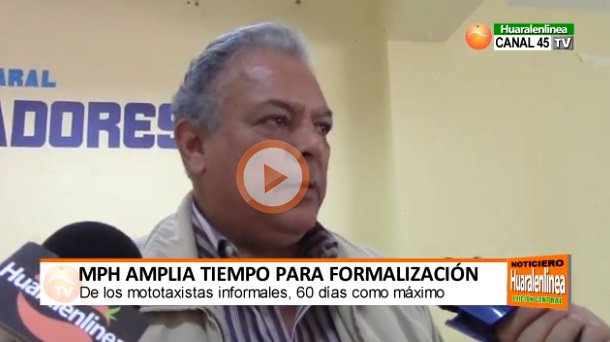 Debido a la gran cantidad de mototaxis informales en nuestra ciudad, el regidor Luis Bustos informó que se ha ampliado el tiempo a 60 días para que los informales puedan regularizar su situación e ingresar de manera formal a la empresa que vea por conveniente