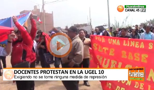 Con arengas y carteles en manos esta mañana los docentes del SUTEP protestaron a los exteriores de la Ugel 10 exigiendo no se tome ninguna medida de represión, ya que se les querría descontar su pago por la huelga indefinida en la que vienen participando para exigir sus derechos laborales al ministerio de educación.