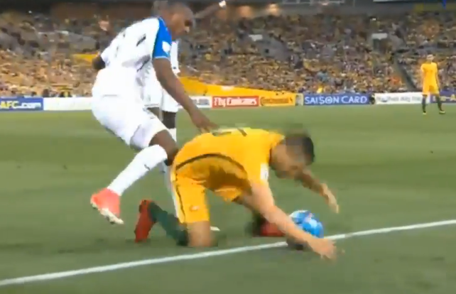 54′ Australia aprovechó la falta señalada y Jedinak le dió el primer gol.