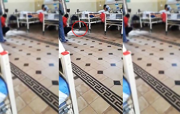 En el vídeo se aprecia como algunos trabajadores intentan matar al roedor con escobas y trapeadores, pero este logró escaparse entre las camas de la sala Santo Toribio.