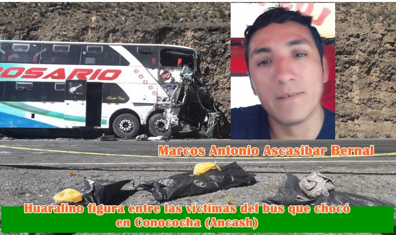 El joven padre de familia Marcos Antonio Ascasibar Bernal de 39 años de edad, que perdiera la vida en el bus que chocó en Conococha, en la carretera de penetración de Paramonga a Huaraz, este 24 de Diciembre, es un huaralino que se dedicaba al negocio y que deja a dos menores hijos en la orfandad.