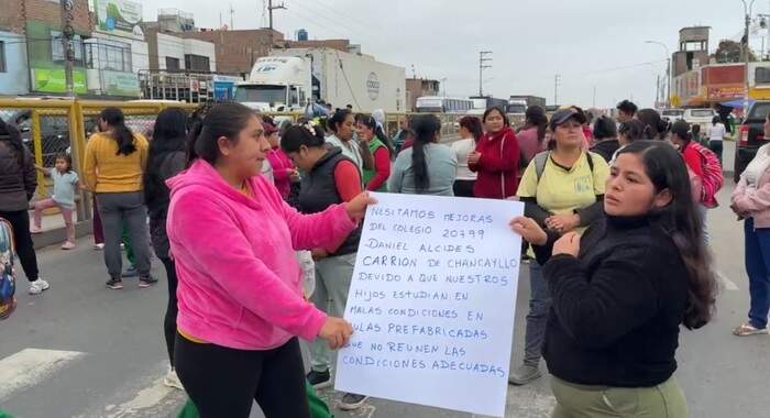 Un grupo de padres de familia y alumnos del colegio Daniel Alcides Carrión del centro poblado Chancayllo, en el distrito de Chancay, bloquearon este viernes el kilómetro 90 de la Panamericana Norte, en protesta por el deteriorado estado de la infraestructura educativa.