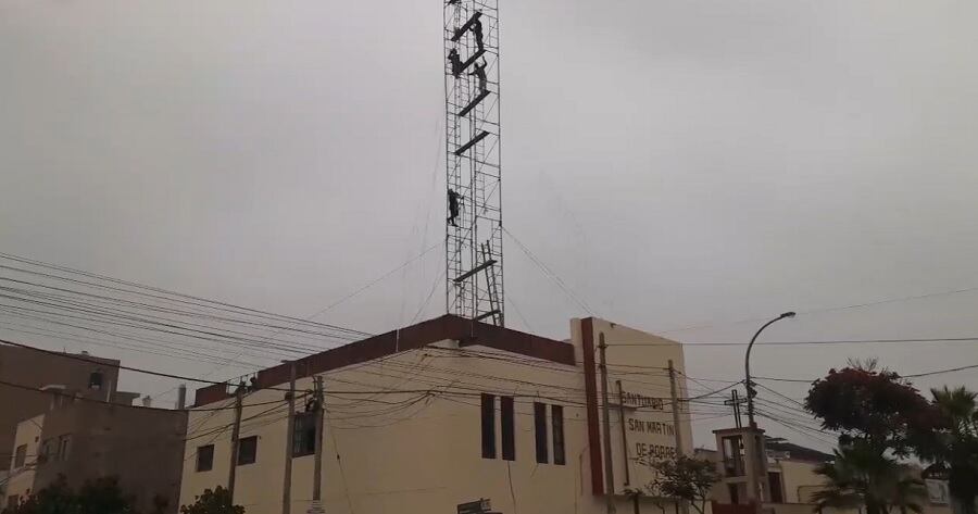 Una delgada antena de internet que se encuentra en la azotea del santuario de San Martín de Porres, ubicado en la Av. Chancay, muy cerca del óvalo de “Los tres Arcos”, se convirtió en una trampa mortal para 2 trabajadores que treparon a hacerle unas reparaciones.
