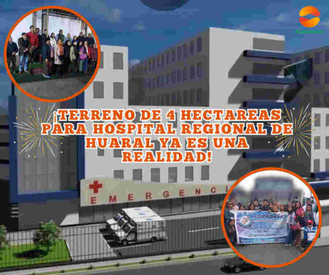 La gobernadora regional de Lima, Rosa Vásquez Cuadrado, anunció que se concretó la inscripción definitiva de aproximadamente 40 mil metros cuadrados —equivalentes a cuatro hectáreas— de terreno cuya afectación en uso ha sido otorgada oficialmente al Gobierno Regional de Lima. En dicho predio se proyecta la construcción del esperado Hospital Regional para la provincia de Huaral.